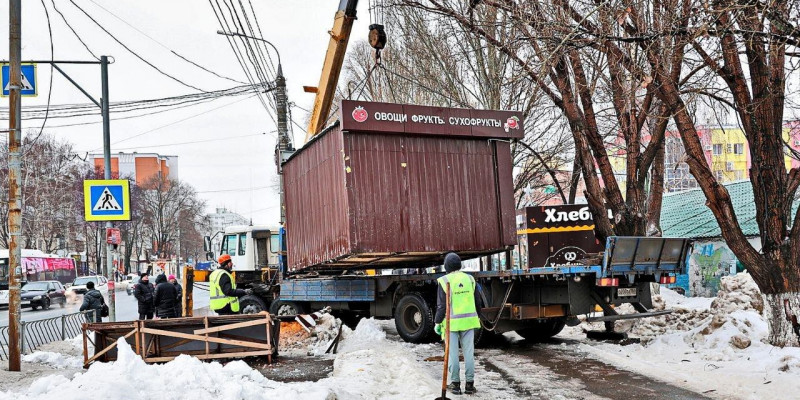 "В прошлом году приступили к ревизии незаконно установленных нестационарных торговых объектов (киосков, ларьков). Теперь начинаем их демонтировать, за два дня вывезли 15 киосков. И это только начало, работа будет продолжена и на этой неделе.
