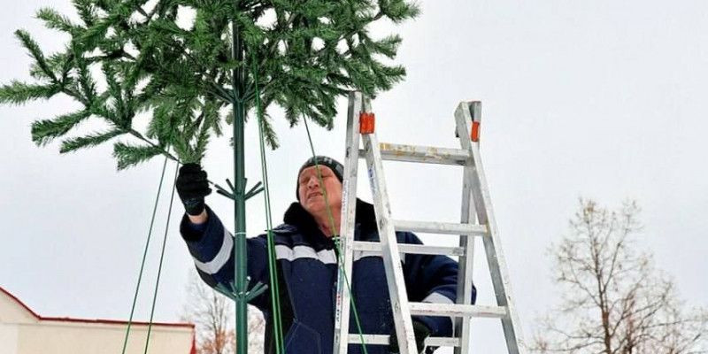В Самарских парках планируется установить 10 елочных комплексов. Первым украсили парк Дружбы. На этапе подготовки собираются конструкции елок, затем установят энергосберегающую иллюминацию и большие елочные игрушки. Высота елок составляет 5 метров, их наряжают с помощью лестниц.