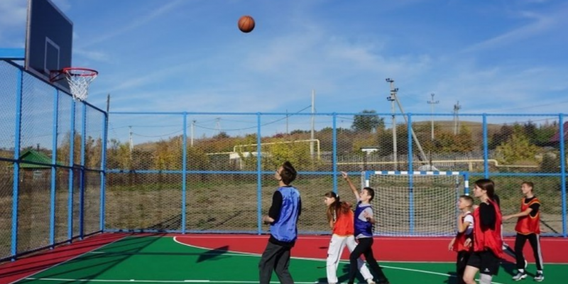 - универсальная спортивная площадка с полимерным покрытием для игры в волейбол, баскетбол, гандбол и мини-футбол.
