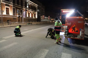 В рамках гарантийных обязательств разметку в текущий период наносят на двенадцати объектах: Комсомольской площади и улицах Вилоновской, Красноармейской, Фрунзе, Льва Толстого, Ленинградской, Маяковского, Агибалова, Спортивной, Белорусской, Трубной и Обувной. В рамках нового муниципального контракта к работам приступят на улицах Промышленности, Братьев Коростелевых, XXII Партсъезда, проспекте Кирова и др.
