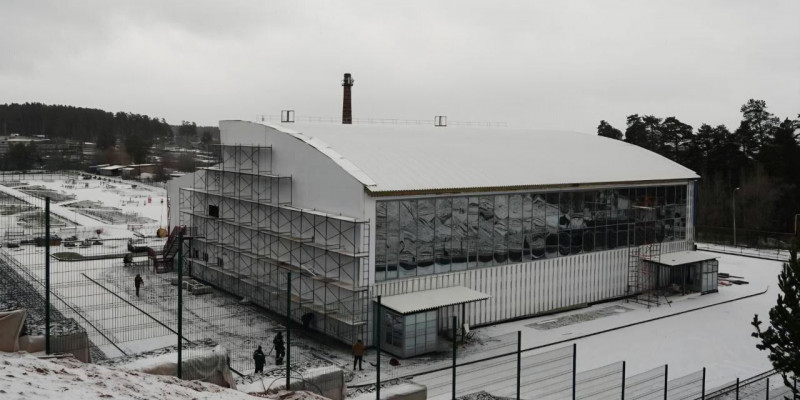 В настоящее время в полном объеме смонтированы стеновые сэндвич-панели и кровельный профнастил, устройство витражей и окон, полов первого и второго этажей, спортзала. На финишной прямой — отделка фасада и внутренних помещений, устройство кровли, перегородок водонапорной камеры, монтаж системы инженерных коммуникаций: установка сетей водоснабжения и канализации, устройство наружной тепловой сети. На 98% выполнено благоустройство прилегающей территории, в том числе монтаж наружного освещения.