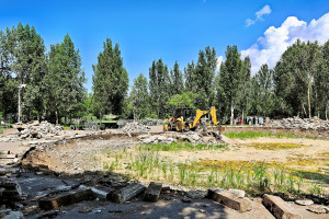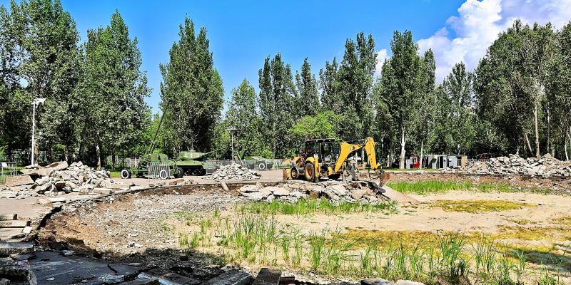 Сейчас в парке идут демонтажные работы – подрядчик убирает старые откосы пересохшего озера. В дальнейшем специалисты займутся устройством гидроизоляции и новых откосов – габионных конструкций. Также до конца лета здесь будет выполнен ремонт пешеходных дорожек, установка ограждений, пандусов и других малых архитектурных форм.