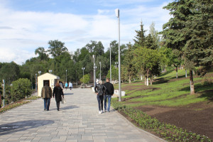 Прогулочную зону собираются сделать многоуровневой. В ее состав войдет пешеходная эспланада протяженностью 1,1 км. Ниже будет располагаться первый ярус. Он как раз и соединит старую и новую набережные. От этой площадки будут идти спуски на нижний уровень ландшафтной зоны. Также здесь разместят подъемы на верхний уровень набережной, на территорию пивзавода и ГРЭС.