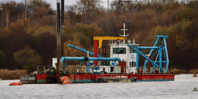 Результатом первого этапа станет более 41 гектара акватории, расчищенной от донных отложений и растительности. В этом помогает земснаряд, который перекачивает ил по пульпопроводу на расстояние 1,5 км. Так донный грунт попадает на карты намыва. Иными словами, это три большие «ванны», каждая до 12 м в глубину. А когда карта заполняется, ее консервируют и накрывают почвенно-растительным слоем.