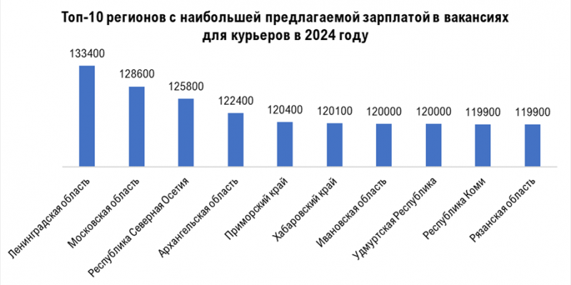 Регионами-лидерами по наибольшей доле вакансий для курьеров в 2024 году стали Москва (более 20 тыс. вакансий или 15% от всего объёма по стране), Московская обл. (16,4 тыс. или 8%), Петербург (15,4 тыс. или 8%). В Самарской области работодатели разместили свыше 7 тыс. вакансий, что на 34% больше, чем в 2023 году.