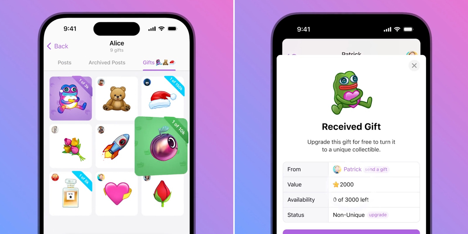 Возможность превратить имеющиеся подарочные сообщения и эмодзи в коллекцию, а затем, продать на NFT-сервисах;