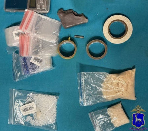В квартире задержанного сотрудники территориального органа внутренних дел обнаружили и изъяли из прикроватной тумбы два пакета с веществами, а также телефон, изоляционные ленты, пластилин, электронные весы, пакеты и другие предметы, использовавшиеся для расфасовки.