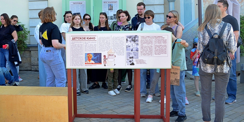 В 14.00 начнется экскурсия по выставке «Будь готов!» (12+). Проект рассказывает, какими были пионеры накануне и во время войны, что лежало в основе их ценностей, каким был их мир детства. Посетители увидят лучшие образцы детского кино и литературы второй половины 1930-х – первой половины 1940-х годов. К примеру, фильмы «Доктор Айболит» (6+) и «Тимур и его команда» (6+), книгу Аркадия Гайдара «Чук и Гек» (6+), поэму Сергея Михалкова «Дядя Степа» (6+) и другие шедевры советского искусства. Также гости смогут познакомиться с газетой «Пионерская правда», журналом «Пионер» и изданиями для детей – «Чиж» и «Мурзилка».