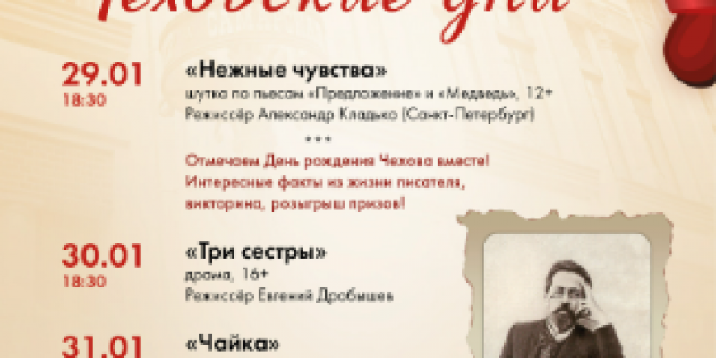 Каждый день с 29 января по 1 февраля на сцене театра спектакли по пьесам Антона Павловича!