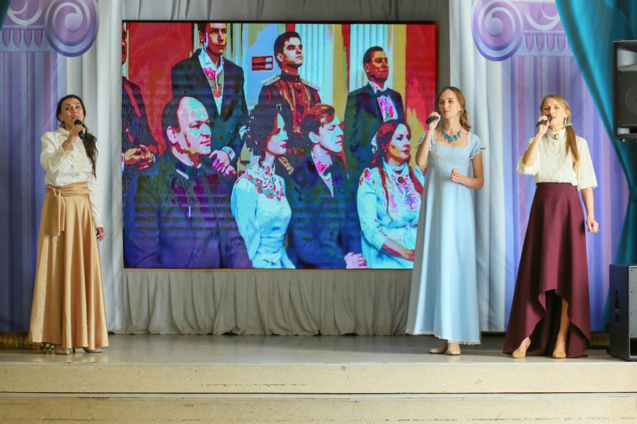 Со сцены звучали стихи и романсы, а чтобы гости смогли с удовольствием исполнить танцы пушкинской эпохи, ведущая вечера Алена Садофьева, руководитель клуба исторического танца "Свита", помогала им освоить фигуры полонеза, польки, кадрили.