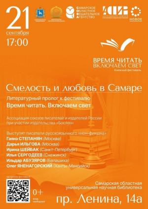 Напомним, что V Межрегиональный фестиваль «Время читать» пройдёт в Самарской областной универсальной научной библиотеке 28 и 29 сентября. Его участников ждут встречи с популярными российскими литераторами, ярмарка крупнейших книжных издательств, музыкальные выступления, художественные выставки, показы спектаклей и многие другие интересные события.