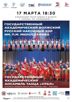 впервые встретятся два именитых коллектива - легендарный коллектив Поволжья - Государственный академический Волжский русский народный хор имени Петра Милославова и ведущий танцевальный коллектив Урала – Государственный академический ансамбль nанца «Урал».