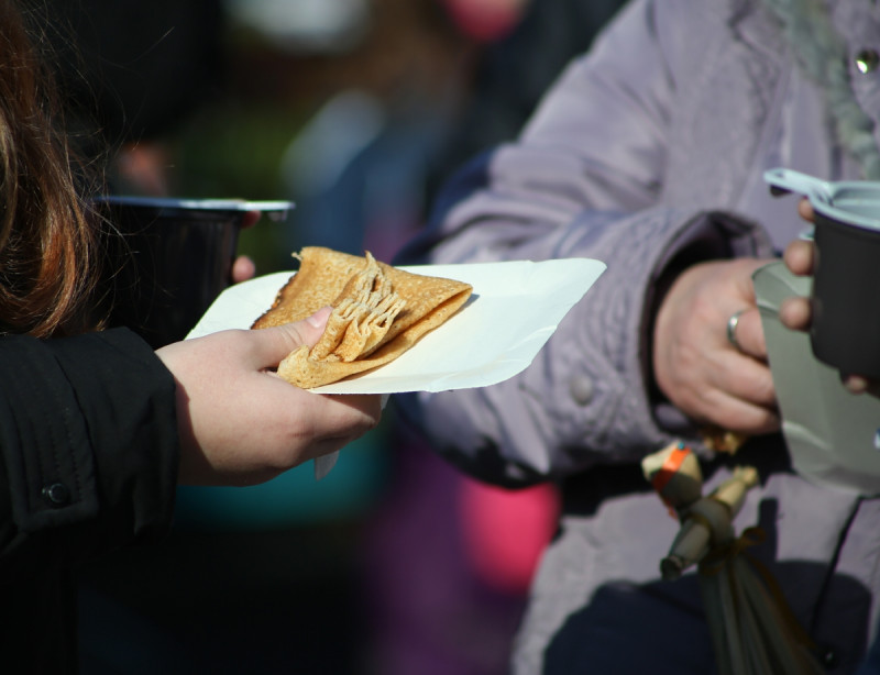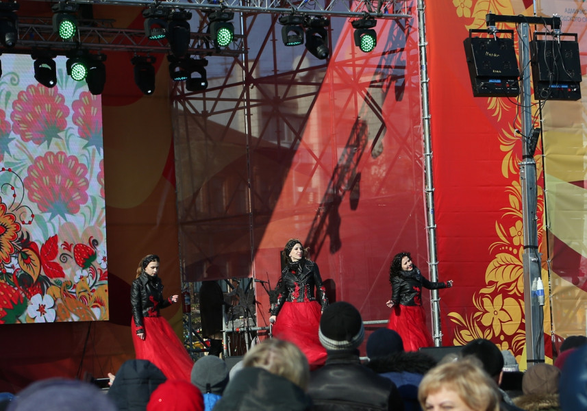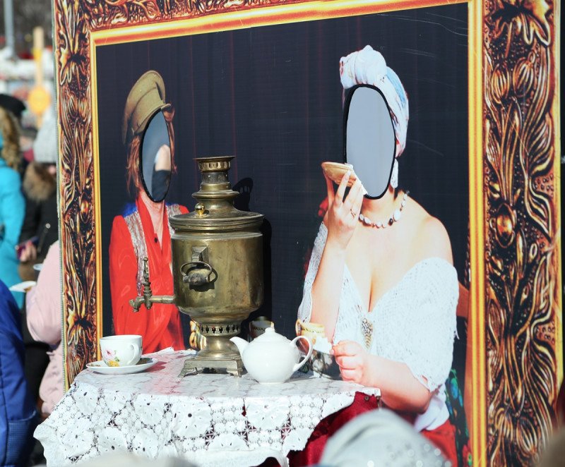 Также организовано бесплатное угощение гостей праздника блинами и чаем, на площади развернулся настоящий блинный праздник!
