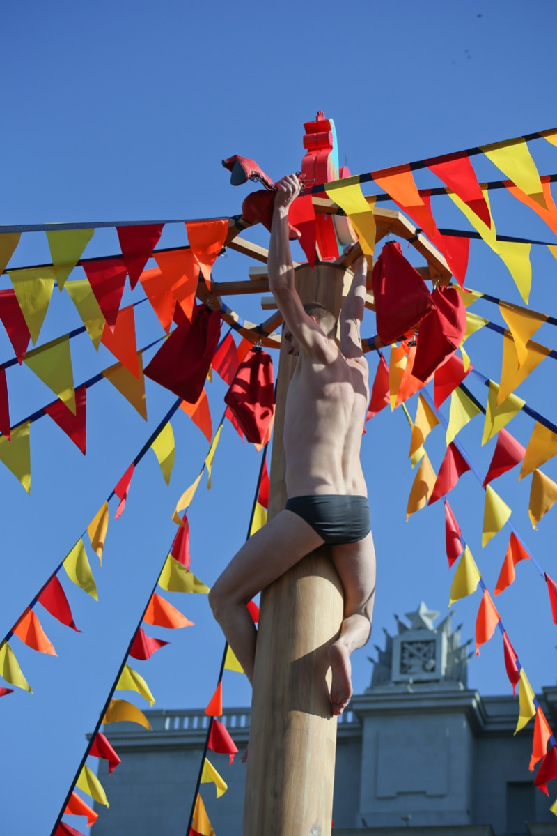 Развлечений - на любой вкус: это и перетягивание каната, и бой подушками, и подъём на столб с призами, и хороводы.