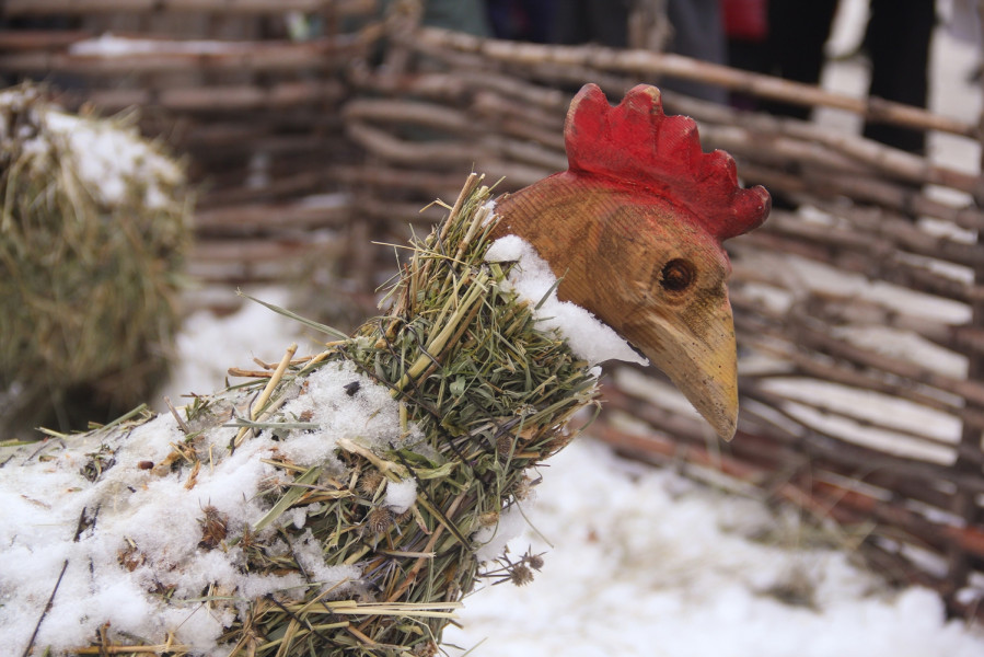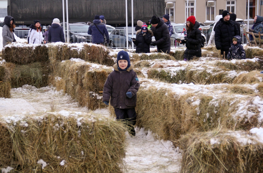 Изюминкой праздника стало «Деревенское подворье» - лабиринт из настоящего сена, из него же скульптуры в виде домашнего скота, а также телега и печка.