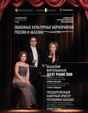 7 апреля Самарская филармония станет площадкой для яркого события в рамках проекта «Обменные культурные мероприятия России и Абхазии». В этот день на сцене филармонии состоится концерт фортепианного дуэта Piano Duo народной артистки Республики Абхазия Нинель Бжании и заслуженной артистки Республики Абхазия Гулизы Авидзбы в сопровождении Государственного камерного оркестра Республики Абхазия под руководством главного дирижера, народного артиста Республики Абхазия Давида Терзяна.
