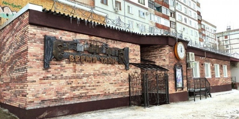 Входная группа выполнена необычно, уникальными кованными элементами: название театра «Время тайн» с подсветкой, афишные стенды, ажурные перила и козырьки. Фишка фасада – часы-куранты, исполняющие мелодию «Наступает время тайн», написанная основателем и художественным руководителем театра «Время тайн» Андреем Юниным к одному из спектаклей.