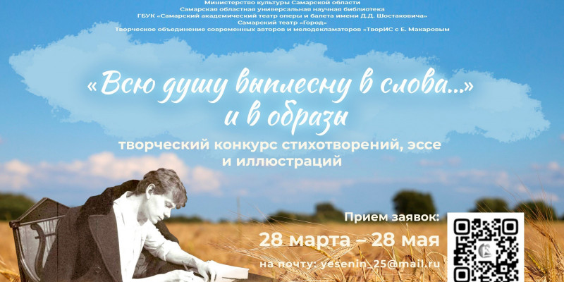 Творческий конкурс стихотворений, эссе и иллюстраций «„Всю душу выплесну в слова…“ и в образы» проводится СОУНБ в партнёрстве с Самарским академическим театром оперы и балета имени Д. Шостаковича, Самарским театром «Город» и творческим объединением современных авторов и мелодекламаторов «ТворИС с Е. Макаровым». Последние новости проекта и подробные правила участия в нём можно будет узнать на его официальной странице «ВКонтакте», а также в Положении о конкурсе.
