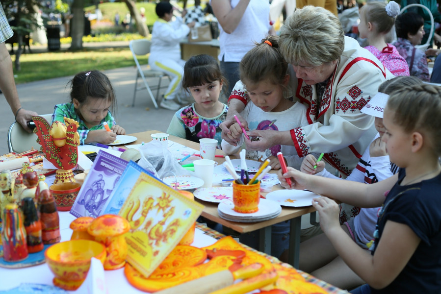 Дети и взрослые могли познакомиться со славянской письменностью, изготовить игрушку или предметы быта, изготовить свою персональную открытку с национальными орнаментами, примерить национальные костюмы и многое другое.