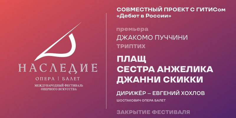 19 апреля в 15:00 на сцене Самарского академического театра оперы и балета имени Д.Д. Шостаковича Первый Международный фестиваль оперного искусства «Наследие. Опера» завершится премьерой «Триптиха» Джакомо Пуччини, состоящего из трех одноактных опер: «Плащ» (премьера!), «Сестра Анжелика» (премьера!), «Джанни Скикки» (премьера 2018 года). 12+