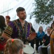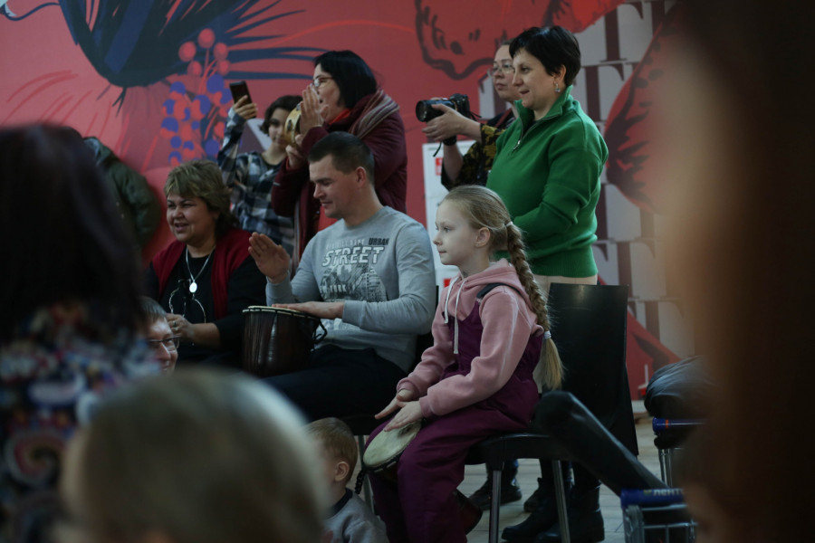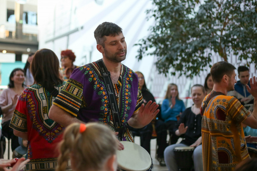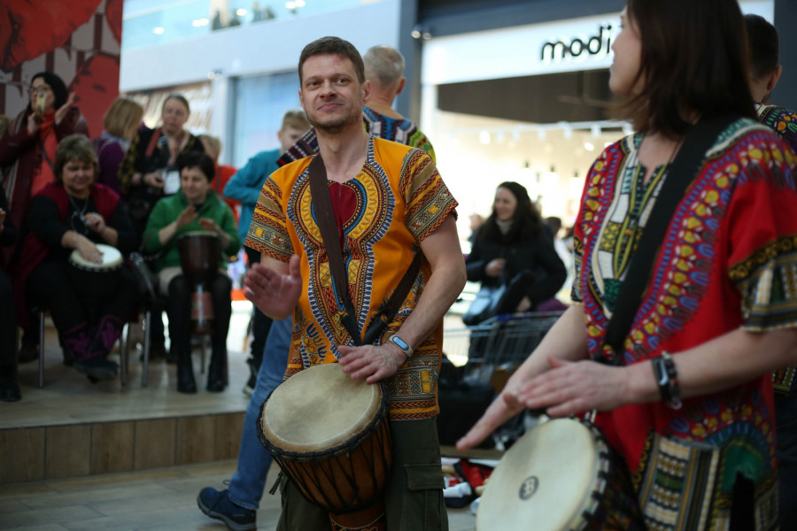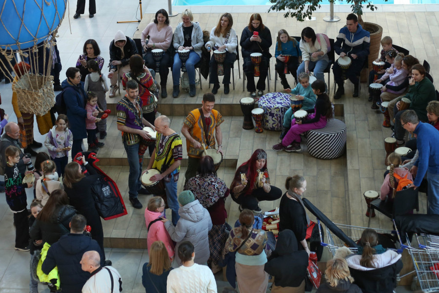 Желающие могли поиграть на барабанах или сняться с артистами в колоритных нарядах.