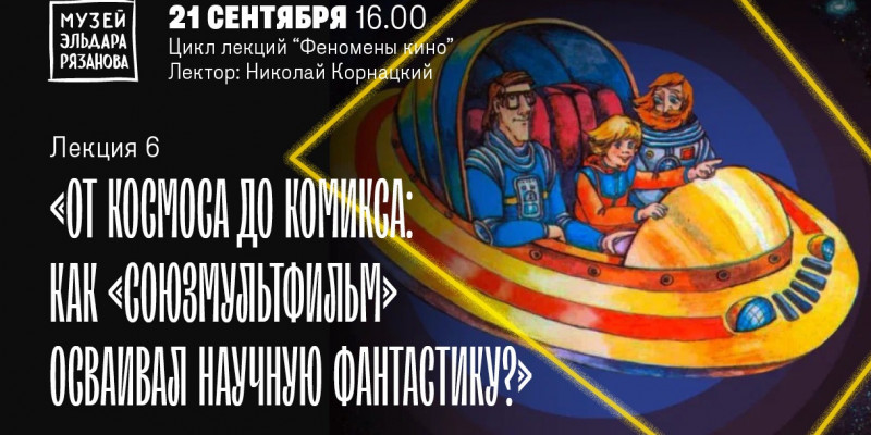 21 сентября (суббота) в 16.00 пройдет лекция «От космоса до комикса: как «Союзмультфильм» осваивал научную фантастику» (12+). Ее прочитает историк кино, кинообозреватель газеты «Ведомости», автор Telegram-канала «Звоните Гайдаю!» Николай Корнацкий (Москва).