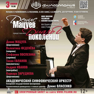 Музыкальный фестиваль «Денис Мацуев представляет: диалог поколений» проходит по всей России. Он объединяет на сцене музыкантов разных поколений, представителей российской исполнительской школы – от юных звёзд до всемирно известных музыкантов. Художественный руководитель Фестиваля – российский музыкант и общественный 12+деятель, народный артист РФ, лауреат Государственной премии РФ Денис Мацуев.