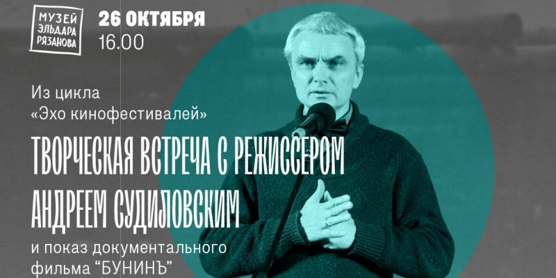 На встрече Судиловский расскажет об идее и процессе создания своего нового документального фильма «Бунинъ» (2023, 12+) – обсудит с гостями замысел начала и окончания кинокартины, объяснит, на каких моментах биографии писателя сделан акцент.