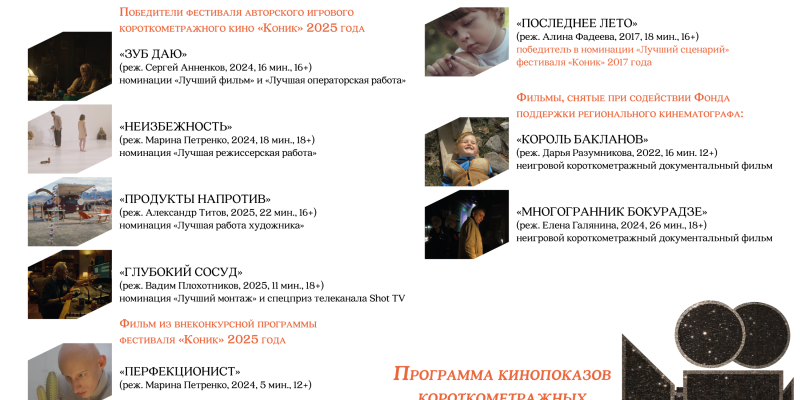 · «Перфекционист» (режиссер Марина Петренко, 2024, 5 минут, 12+), участник внеконкурсной программы 2025 года.