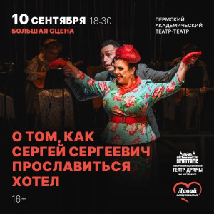 Показ спектакля «О том, как Сергей Сергеевич прославиться хотел» состоится 10 сентября в 18:30, продолжительность 1 час 30 минут без антракта.