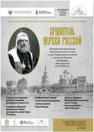 29 июня 2025 года в Самаре пройдут празднования в честь 100-летия со дня представления святителя Тихона, патриарха Всероссийского, сопровождающиеся принесением мощей великого святого. В рамках торжеств жители и гости города получат возможность принять участие в концертной программе «Хранитель Церкви Русской».