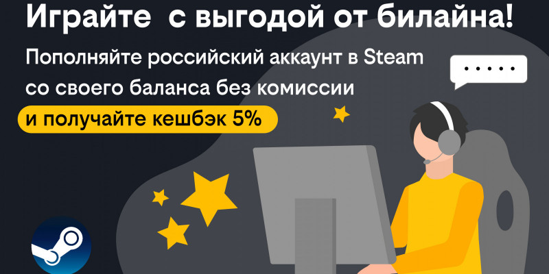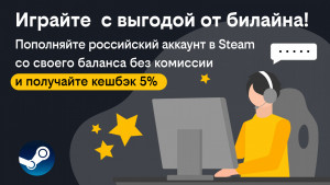билайн запустил акцию с кешбэком за пополнение кошелька в Steam. Оператор вернёт 5% с каждого перевода на российский аккаунт с баланса телефона. Это отличная возможность пополнить свой кошелёк на популярной платформе и обзавестись парочкой новых игр с выгодой.