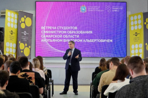 В этот же день министр образования Самарской области встретился со студентами Университета сервиса. Виктор Акопьян рассказал о возможности для каждого выпускника вуза бесплатно пройти профессиональную переподготовку по направлению «Педагогика» с правом преподавать в школах. Встреча прошла в формате открытого диалога, где каждый мог задать свои вопросы министру.