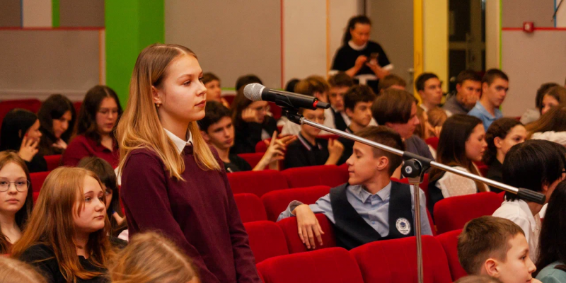 Лектор отметил, что для него это особенный, волнительный опыт — он впервые общался с аудиторией именно подросткового возраста. Клим Шипенко поделился своей историей обучения в киношколе, в которую он поступил в 14 лет.