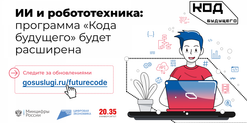 Один из инструментов подготовки кадров – ранняя профориентация школьников. На это направлен образовательный проект «Код будущего», который в 2025 году продолжится под эгидой федерального проекта «Кадры для цифровой трансформации» национального проекта «Экономика данных и цифровая трансформация государства», и будет дополнен курсами по робототехнике и ИИ-технологиям, а также профессиональным уровнем программирования.