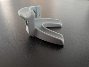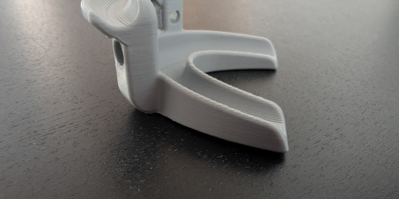 Для решения этой проблемы специалисты с помощью аддитивных технологий создали оригинальное приспособление. Эксперименты на гипсовых слепках позволили создать цифровую модель и спроектировать рабочий образец крепления, подходящего под большинство типов челюстей. Готовое изделие из PLA- пластика было напечатано на 3D-притере.