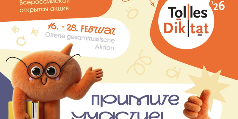 До 28 февраля 2026 года проходит масштабная акция — Всероссийский открытый диктант по немецкому языку «Tolles Diktat». Мероприятие приурочено к Международному дню родного языка. В Год единства народов России акция состоится в 14-й раз при поддержке Федерального агентства по делам национальностей.