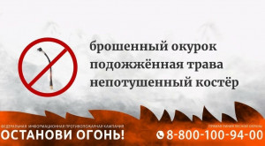 Пресс-служба Федеральной Авиалесоохраны сообщает о старте Федеральной информационной кампании «Останови огонь!», направленной на снижение рисков возникновения из-за палов сухой травы и не затушенных костров природных (ландшафтных) пожаров на сельхозполях, в степях, в лесах, в населенных пунктах, дачных сообществах и на других территориях.
