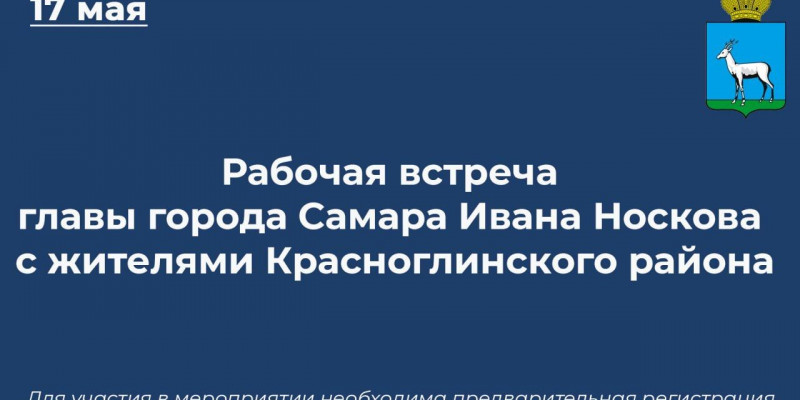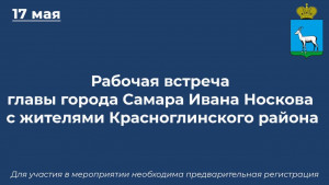 17 мая пройдет рабочая встреча главы города Самара Ивана Носкова с жителями Красноглинского района.
