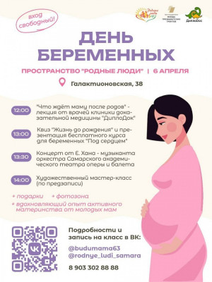 Общественная организация "Родные люди" приглашает будущих родителей отпраздновать День беременных тепло, уютно и полезно. Гостей ждет насыщенная программа с лекциями врачей, необычной викториной, живой музыкой, творческим мастер-классом и обменом опытом с молодыми мамами. Также на празднике будет презентован бесплатный комплексный курс подготовки к родительству «Под сердцем». Вход свободный.