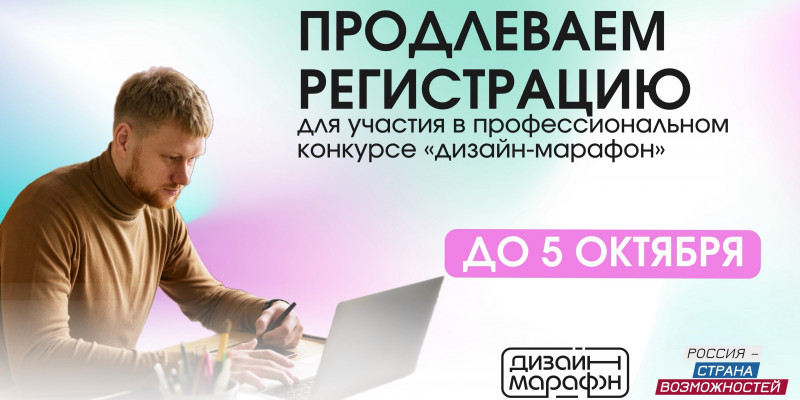 Профессиональный конкурс для дизайнеров проводится по трем профильным направлениям: графический и цифровой дизайн, а также дизайн среды. К каждому из направлений конкурса уже присоединились тысячи дизайнеров со всей страны, однако проект продолжает ежедневно привлекать новых участников. В связи с этим было принято решение продлить регистрацию на конкурс. Регистрация открыта на сайте проекта на платформе «Россия – страна возможностей» до 5 октября включительно.