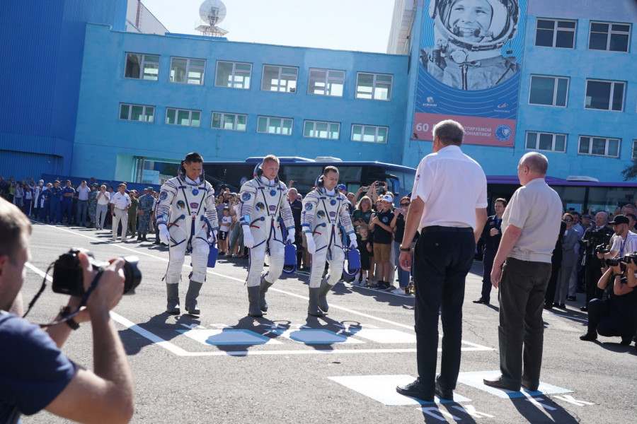 Перед стартом губернатор вместе с Дмитрием Барановым и членами государственной комиссии проводил в корабль экипаж.