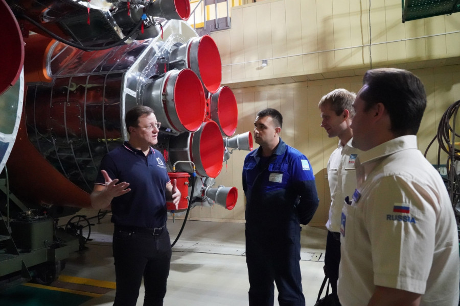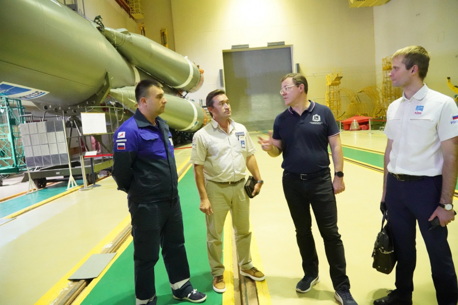Сегодня же глава региона встретился с коллективом Байконурского филиала АО РКЦ «Прогресс» и осмотрел монтажно-испытательный комплекс ракет «Союз-2». Начальник комплекса подготовки космических аппаратов и ракет-носителей Байконурского филиала РКЦ «Прогресс» Дмитрий Семиколенов рассказал Главе региона о работе комплекса и процессе подготовки носителя к пуску. Именно здесь, на космодроме, осуществляется финальная сборка ракеты, а также идёт проверка исправности всех систем и датчиков. Вся информация в ходе финальных испытаний, а также о старте ракеты подается на пульт.