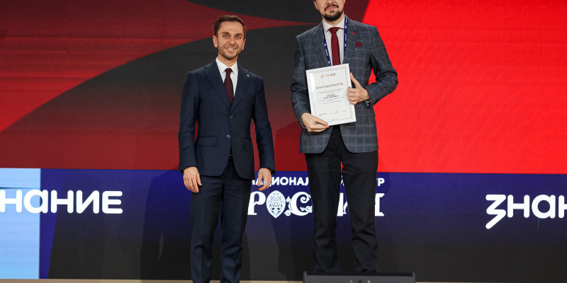 17 апреля в Национальном центре «Россия» в Москве состоялась торжественная церемония награждения выдающихся просветителей, сотрудников и партнеров Российского общества «Знание». Награды вручали Первый заместитель Руководителя Администрации Президента Сергей Кириенко и генеральный директор Общества «Знание» Максим Древаль. В числе награжденных — доцент СамГТУ Егор Макаров. Церемония прошла в рамках V Съезда Российского общества «Знание», который стал частью Съезда просветителей и реализован в рамках мероприятий нацпроекта «Молодежь и дети».