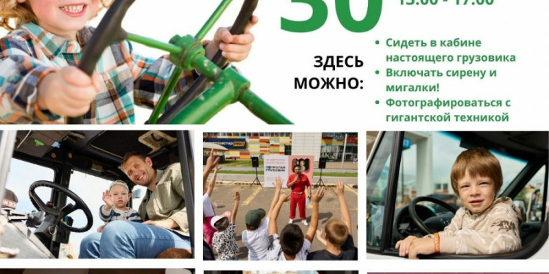 Юные гости смогут не только сфотографироваться, но и забраться в кабину, подержаться за руль и нажать на настоящие кнопки. Дополнительно гостей ждут сценическая программа с выступлениями творческих коллективов, конкурсы и розыгрыши призов, детская зона с аниматорами, а также маркет изделий.