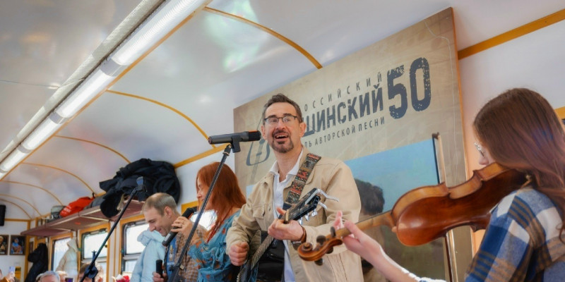Автором идеи выступил бард, участник проекта «Большая самарская тропа» Леонид Радин. Вместе с коллективом самарских музыкантов он исполнил для пассажиров песни о любви, весне и, конечно, о женщинах.