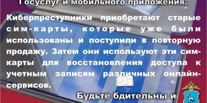 Полиция Самарской области предупреждает! Поменяли сим-карту — открепите номер от Госуслуг и мобильного приложения.
