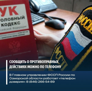 Сообщить о злоупотреблении служебным положением, склонении к получению/даче взятки, злоупотреблении полномочиями либо ином незаконном использовании физическим лицом своего должностного положения вопреки законным интересам общества и государства можно по «телефону доверия»: 8 (846) 266-54-89.
