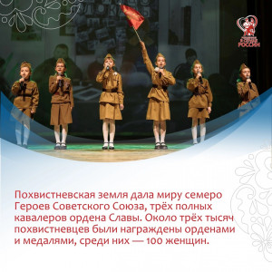 Семеро славных сынов Похвистневского района стали Героями Советского Союза. Трое – полные кавалеры Ордена Славы. Многие похвистневцы не вернулись с полей сражений в родные места. Но немало из них дошагали до Победы. Через Курскую дугу до самого Рейхстага прошел уроженец Старого Аманака, гвардии сержант Николай Иванович Родионов. Дошел и поле штурма расписался на стене поверженной фашисткой цитадели зла. Самодеятельные артисты посвятили ушедшим землякам пронзительные композиции «Я живой» и «Маки», по фестивальной сцене прошел Бессмертный полк с фотографиями тех, кто вернул Родине мир.