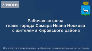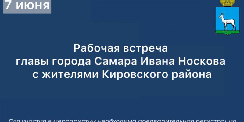 В субботу, 7 июня, состоится рабочая встреча главы города Самара Ивана Носкова с жителями Кировского района.